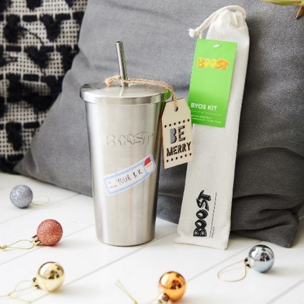 ในปี 2017 Boost ได้ปรับปรุง Enviro-cup ด้วย Fill-up-cup รุ่นใหม่ ซึ่งยังคงขนาดและส่วนลดไว้ Boost มองว่าแก้วรุ่นนี้มีความสวยงามและออกแบบตาม ‘หลักสรีรศาสตร์’ เพื่อป้องกันการหกเลอะเทอะ ก่อนที่ปลายปี 2018 จะเปิดตัวแก้วสเตนเลสแบบใช้ซ้ำได้ พร้อมหลอดสเตนเลสและชุดทำความสะอาดหลอด ซึ่งเป็นอีกก้าวเพื่อความยั่งยืน ลดขยะ และสร้างภาพลักษณ์ร่วมกับเทรนด์รักษ์โลกที่มาแรง