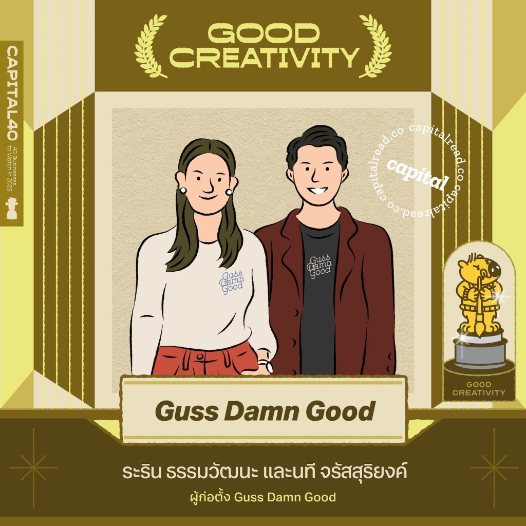 ท่ามกลางความร้อนแรงของอากาศประเทศไทยก็ยังมีไอศกรีมของ ‘Guss Damn Good’ ที่ทำให้ทุกคนที่ได้สัมผัสรู้สึกเย็นทั้งกายและใจ ด้วยเสน่ห์ของเนื้อสัมผัสที่เนียน นุ่ม แต่ไม่หนักเกินไป และถึงแม้จะไม่มีท็อปปิ้งที่ดูหวือหวา แต่ในทุกคำที่ตักชิมต้องอัดแน่นไปด้วยวัตถุดิบและความคิดสร้างสรรค์ที่ใส่ลงไป ทำให้ไม่ว่าจะออกรสชาติใหม่อะไรมา ก็ชวนให้ตบเข่าดังฉาดว่าคิดได้ยังไง อย่างการหยิบบทเพลงของ Scrubb ออกมาทำเป็นรสชาติที่คนรัก ไปจนรสชาติที่คอลแล็บกับ 9 แบรนด์คู่ครัวไทย ซึ่งในแต่ละรสชาติ ระริน ธรรมวัฒนะ และนที จรัสสุริยงค์ จะหยิบเรื่องราวดีๆ ที่เกิดขึ้นกับพวกเขา และเรื่องราวที่น่าสนใจของแบรนด์ที่มาร่วมคอลแล็บด้วย มาเปลี่ยนเป็นความรู้สึก และเอาความรู้สึกมาเปลี่ยนเป็นรสชาติ เพราะพวกเขาเชื่อว่าถึงแม้ไอศครีมจะพูดไม่ได้ แต่ทำให้คนรู้สึกดีได้ จนปัจจุบันมีกว่า 160 รสชาติ และในบรรดารสชาติเหล่านั้นเกิดจากการคอลแล็บร่วมกับอาร์ทิสต์และแบรนด์น้อยใหญ่ถึง 60 รสชาติ