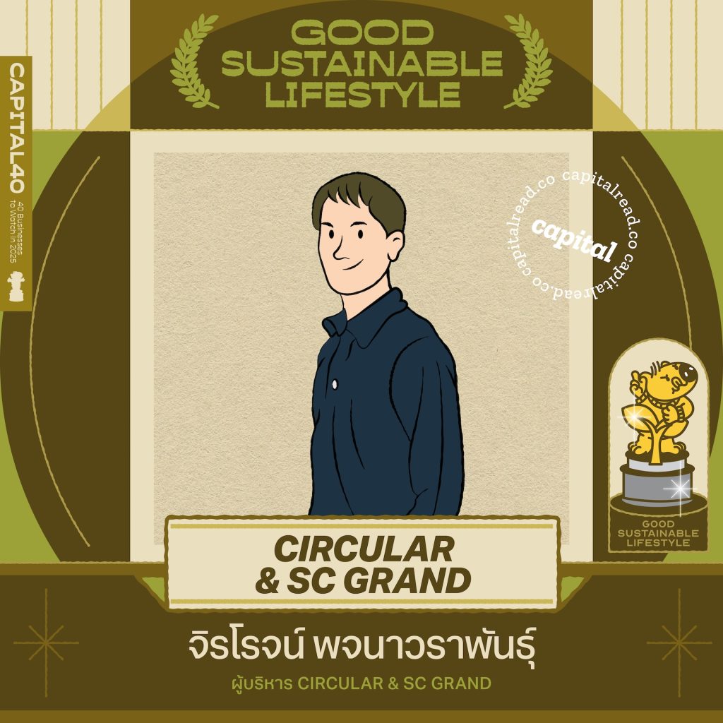 เมื่อนึกถึงธุรกิจสิ่งทอยั่งยืนที่เปลี่ยนขยะอุตสาหกรรมแฟชั่นเป็นผ้ารีไซเคิล หนึ่งในธุรกิจไทยที่จะต้องนึกถึงคือ SC GRAND ผู้ผลิตผ้ารีไซเคิลแบบไม่ฟอกย้อมที่ลดการใช้ทรัพยากรธรรมชาติ ลดสารเคมีในการฟอกย้อม และลดผลกระทบที่ไม่ดีต่อสิ่งแวดล้อม นอกจาก SC GRAND จะมีผ้ารีไซเคิลที่สามารถผลิตเสื้อผ้าหลากหลาย, มีโปรเจกต์รีไซเคิลเสื้อผ้าเก่าเป็นเสื้อผ้าใหม่ (closed loop), และบริการผลิตสินค้าตามต้องการ (OEM) แล้ววัธ–จิรโรจน์ พจนาวราพันธุ์ ทายาทรุ่นที่ 3 และผู้บริหารของ SC GRAND ยังนำผ้ารีไซเคิลจากโรงงานมาสร้างแบรนด์เสื้อผ้าของตัวเองในนามแบรนด์ CIRCULAR เพื่อให้กลุ่มลูกค้าและคนทั่วไปเห็นภาพว่าเส้นใยและผ้ารักษ์โลกมีศักยภาพต่อยอดเป็นสินค้าแฟชั่นได้ ปีที่ผ่านมา Circular ได้ออกคอลเลกชั่นพิเศษที่ร่วมมือกับแบรนด์อื่นมากมาย เช่น การร่วมมือกับการบินไทยและอีกสิบแบรนด์แฟชั่นอย่าง She knows, Rough cut, JUN, Youngfolks, Hangles, Khaki bros, Hamburger studio, Mr.Big, EV girls รวมถึง CIRCULAR ในการแปลงโฉมชุดยูนิฟอร์มที่ไม่ได้ใช้งานแล้วให้เป็นแฟชั่นรักษ์โลก, ร่วมมือกับปั๊ม PT และแบรนด์ยืดเปล่าทำคอลเลกชั่นหมวกและเสื้อยืด, ร่วมมือกับบริษัทเงินติดล้อในการเปลี่ยนเสื้อแจ็กเก็ตเก่าของพนักงานเป็นผ้าห่ม สร้างภาพจำใหม่ว่าแฟชั่นรักษ์โลกก็มีความ minimal classy ที่ทันสมัยได้