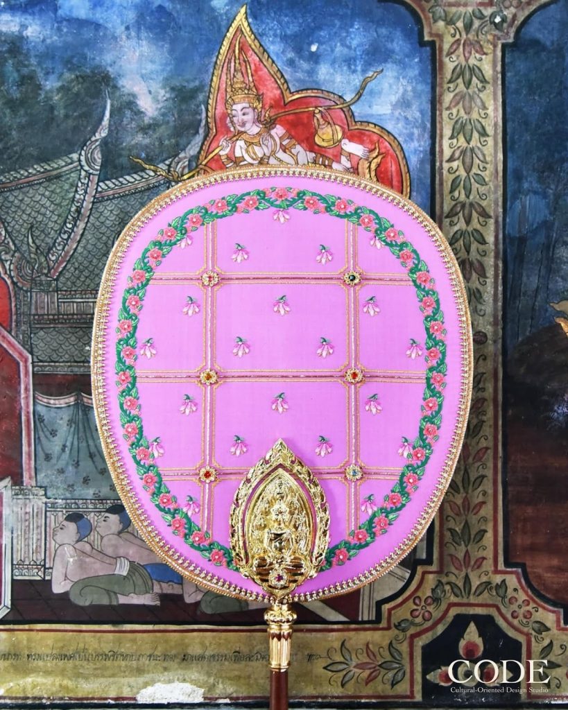 “อย่างตาลปัตร ถ้าอยู่ที่อื่นเราอาจทำได้แค่งานปักบนผ้า แต่พออยู่ย่านนี้ นอกจากร้านปักแล้ว ยังมีร้านทำเหรียญ ทำเครื่องหมาย ทำชิ้นงานทองเหลือง เราก็สามารถสร้างงานจากหลายเทคนิคได้ แทนที่จะเป็นตาลปัตรผ้าอย่างเดียว มันเลยทำให้ผลงานของเราไปได้ไกลกว่ารูปแบบเดิมที่เคยทำ การมาอยู่ตรงนี้มันเหมือนเราได้เจอกับแหล่งผลิตงานคราฟต์ งานฝีมือของกรุงเทพฯ โดยตรง”