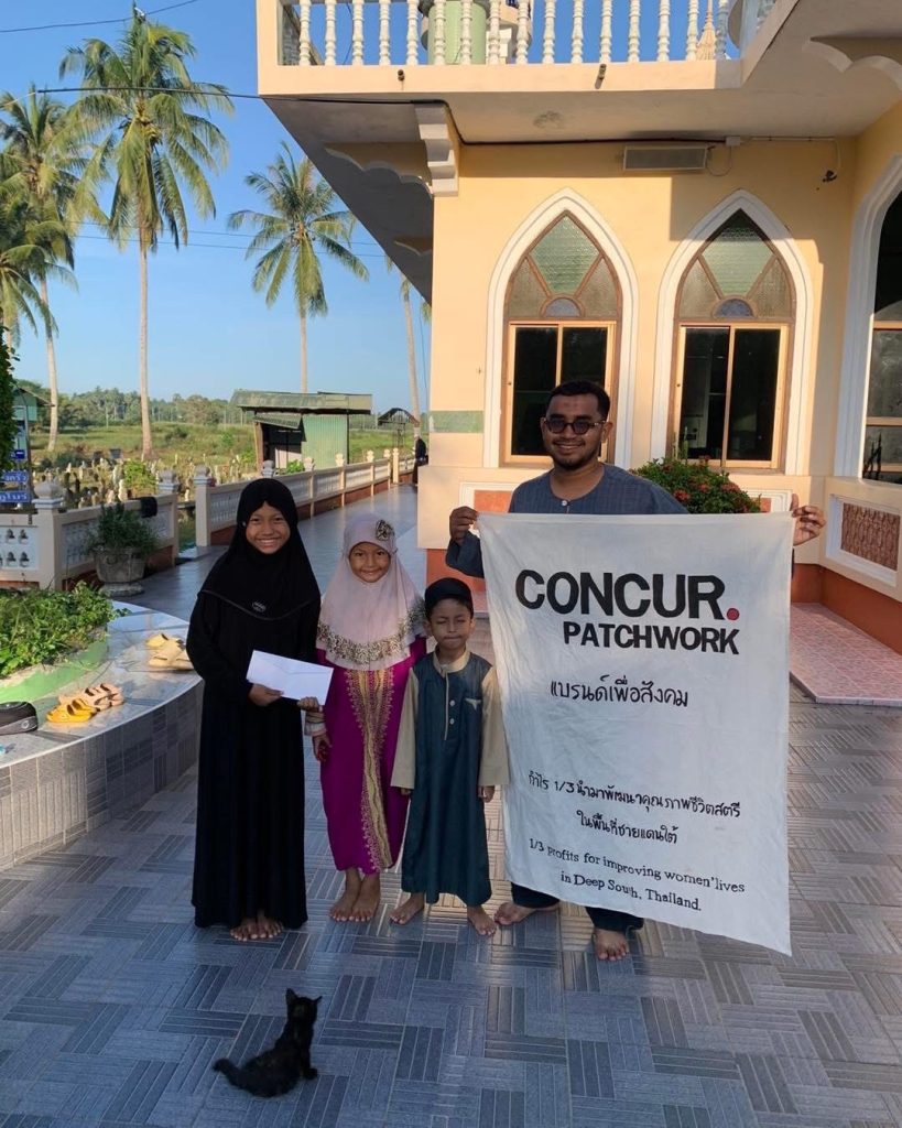 โมเดลธุรกิจของ Concur จึงไม่เพียงแค่สร้างรายได้ แต่ยังแบ่งผลกำไรหนึ่งในสามคืนกลับสู่ชุมชน ผ่านทุนการศึกษา การสนับสนุนชาวบ้าน และกิจกรรมช่วยเหลือผู้ยากไร้ เขาได้รับแรงบันดาลใจจากแบรนด์ TOMS ที่ใช้โมเดล ‘ซื้อหนึ่ง บริจาคหนึ่ง’ แต่เลือกปรับให้เข้ากับบริบทของพื้นที่ที่ยังขาดการศึกษาและโอกาสในสามจังหวัดชายแดนใต้ โดยที่ผ่านมามอบทุนการศึกษาให้คนในพื้นที่กว่า 20 คน บริจาคอาหารและข้าวของให้กับครอบครัวที่ลำบากมากกว่า 36 หมู่บ้าน แม้จะเป็นเพียงการช่วยเหลือเล็กๆ แต่ก็ทำให้ชาวบ้านที่ไม่มีทางออกในชีวิตไม่โดดเดี่ยวจนเกินไปและมีกำลังใจใช้ชีวิตต่อไป