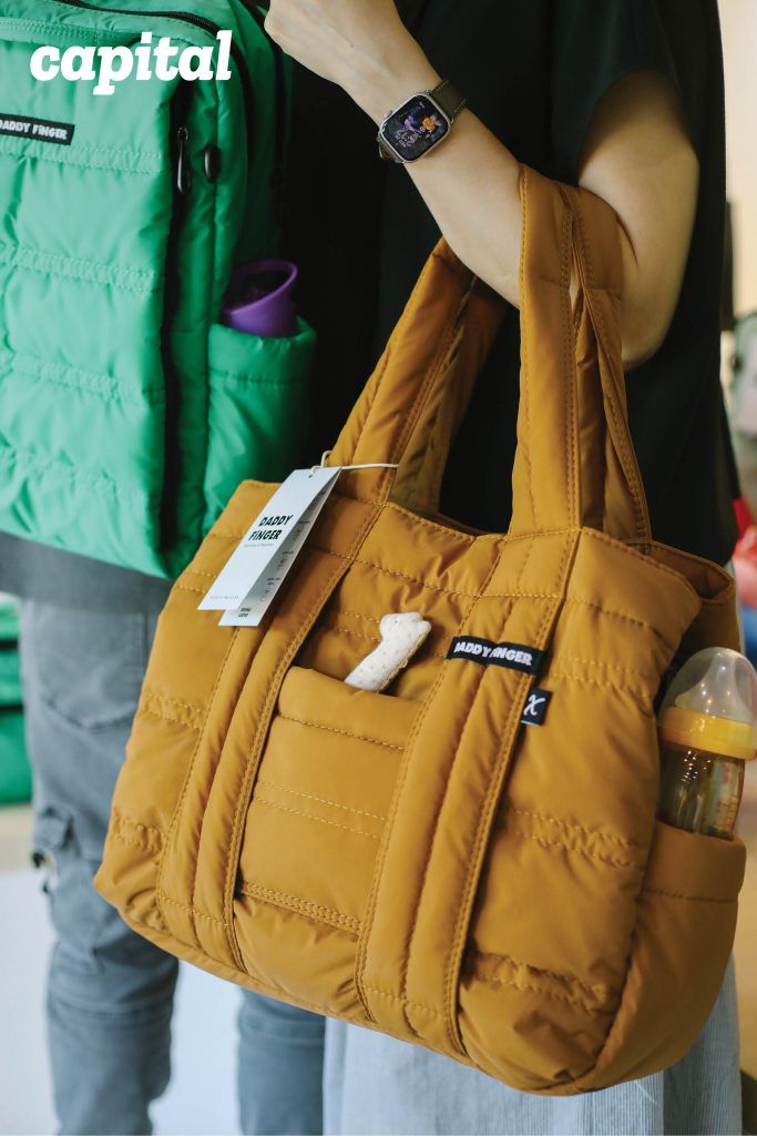 เพราะแม้จะถูกสร้างสรรค์ขึ้นมาให้เป็น ‘กระเป๋าแม่ลูกอ่อน’ แต่กระเป๋าทุกใบของ Daddy Finger ก็มีหน้าตาที่ห่างไกลจากกระเป๋าแม่ลูกอ่อนในภาพจำอยู่มากโข ไม่ใช่เรื่องบังเอิญแต่อย่างใด เพราะนั่นคือสิ่งที่ โย–พุฒิพัฒน์ และ บาย–ภัทรานิษฐ์ กีรติทวีพงศ์ ผู้ก่อตั้งแบรนด์ตั้งใจลบภาพจำกระเป๋าคุณแม่ที่มักจะแต้มด้วยลายการ์ตูนน่ารัก กลายเป็นกระเป๋าหลากสีสันดีไซน์สวย ให้ทุกคนในครอบครัวถือไปไหนมาไหนได้ทุกโอกาส แถมยังอัพเกรดคุณภาพการตัดเย็บให้ทนทานยิ่งขึ้น หากก็ยังไม่ทิ้งฟังก์ชั่นการเป็นกระเป๋าใบใหญ่ จุของได้เยอะ แบบที่กระเป๋าแม่ลูกอ่อนควรจะเป็น