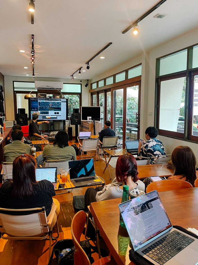 การจัดเวิร์กช็อปเป็นสิ่งที่เราทดลองทำอยู่ เพราะอยากให้พื้นที่นี้จุดประกายไอเดียของผู้คนด้วย คอนเซปต์ของการจัดเวิร์กช็อปก็จะเป็นเรื่องที่เกี่ยวกับดนตรีเป็นหลัก และอยากช่วยปูพื้นฐานแบบสนุกๆ ให้คนมาเอนจอยกัน เหมาะสำหรับคนที่สนใจเรื่องนั้นๆ อยู่แล้วแต่ยังไม่เคยเข้าไป