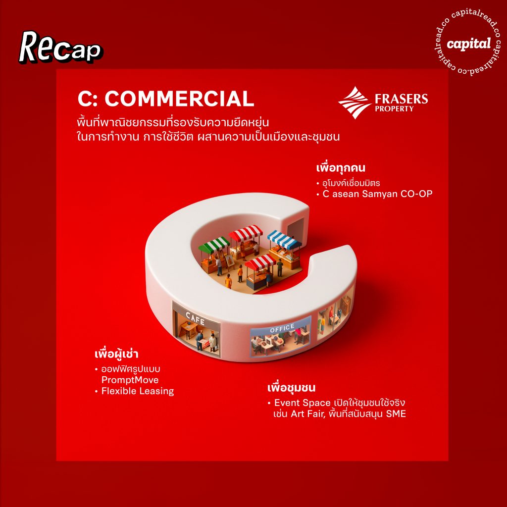กลุ่มธุรกิจสุดท้ายคือการสร้างพื้นที่เชิงพาณิชย์ที่มากกว่าแค่การเป็นอาคารสำนักงานหรือศูนย์การค้า แต่เป็น ‘ศูนย์กลางของชีวิตเมือง’ ที่เข้าใจ เชื่อมโยงผู้คน เพิ่มโอกาส และตอบรับไลฟ์สไตล์คนทำงานได้อย่างชาญฉลาด