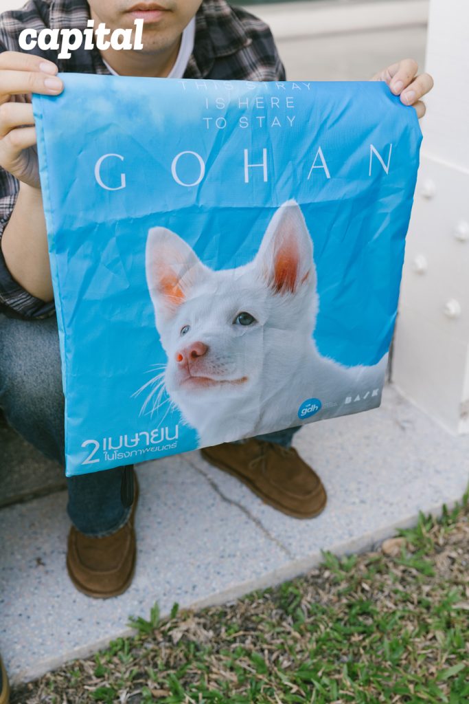 บาส : เราเคยคุยกับพี่วันว่าต้นแบบโกฮังจะหยิบหมาจรตัวหนึ่งที่ชื่อบราวนี่ น้องเป็นหมาที่หนีตายมาจากการทารุณกรรม สภาพที่เรากับอาสาสมัครท่าหนึ่งเจอคือน้องถูกตัดหูขาดสองข้าง มีลวดมัดปาก เราเลยรับเขามาเลี้ยงไว้ และภายหลังส่งน้องไปเลี้ยงต่อที่อื่น ซึ่งความคิดนั้นก็ถูกปัดตกใป