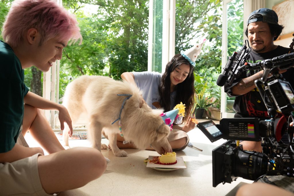 บาส : เรื่องนี้เป็นสิ่งที่พวกเราและพี่วันปักธงกันไว้ตั้งแต่ต้น ทั้งชั่วโมงการทำงานของน้อง ตอนที่น้องอยู่ในกองทุกอย่างต้องพร้อม เอาจริงๆ น้องหมาสบายกว่าเราอีกนะ น้องมีเต็นท์แอร์ส่วนตัวเป็นของตัวเองในขณะที่พวกเรามีพัดลมเป่าหนึ่งตัวกลางแดด แต่เราแฮปปี้กันมากๆ ขณะเดียวกันน้องหมาจะมีแพทย์และพยาบาลจากโรงพยาบาลสัตว์ทองหล่อที่จะมาอยู่ประจำกับกองถ่ายเพื่อคอยดูแลน้อง ฉะนั้นไม่ต้องห่วงเลยว่าน้องจะลำบากหรือไม่สบายตัว ทุกครั้งที่เราสั่งพักเบรกหรือเปลี่ยนเทคคุณหมอจะเข้าไปตรวจน้องทันที