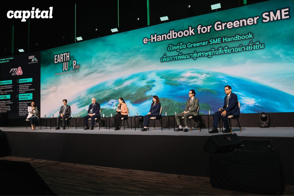 นักธุรกิจจำนวนไม่น้อยอาจยังไม่ทราบว่าประเทศไทยมีองค์กรด้านความยั่งยืนหลากหลายแห่งที่พร้อมสนับสนุนทั้งองค์ความรู้และเครื่องมือที่จำเป็นต่อการเปลี่ยนผ่านสู่เศรษฐกิจสีเขียว ภายในงาน EARTH JUMP 2025 ยังได้มีการเปิดตัวคู่มือ Greener SME Handbook ซึ่งจัดทำโดย Thailand Climate Business Network (ThaiCBN) เครือข่ายความร่วมมือระหว่างองค์กรชั้นนำจากภาคเอกชน ภาครัฐ สถาบันการศึกษา และภาคการเงินการธนาคาร ที่รวมพลังกันอย่างเป็นระบบเพื่อขับเคลื่อนการลดการปล่อยก๊าซเรือนกระจกของประเทศไทย โดยสามารถดาวน์โหลดคู่มือ Greener SME Handbook ได้ที่นี่ https://www.kasikornbank.com/k_44EOKR4