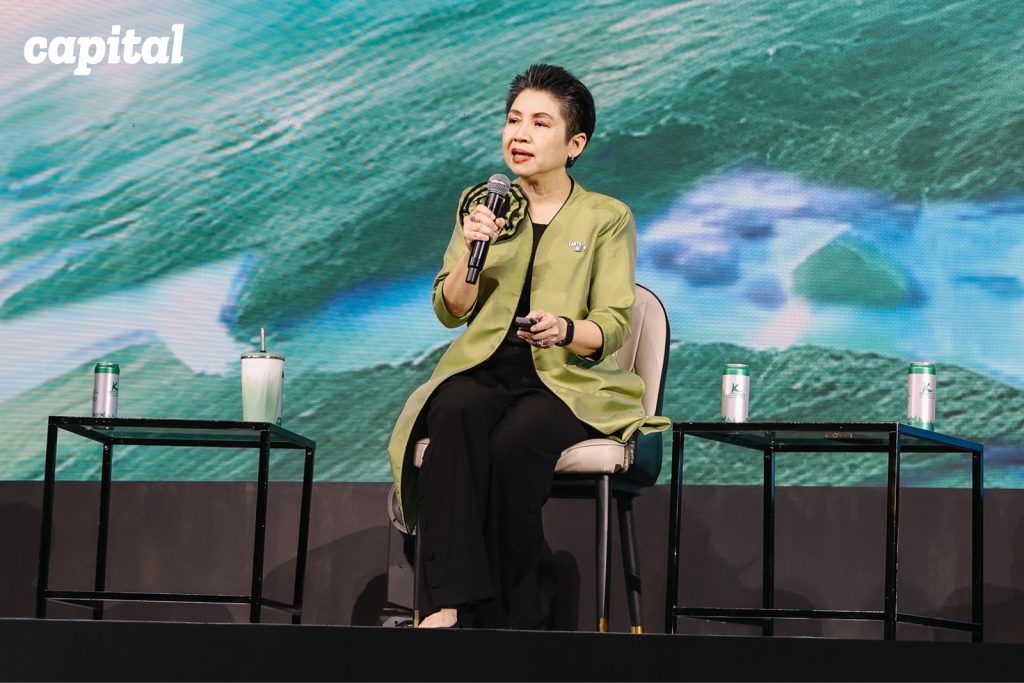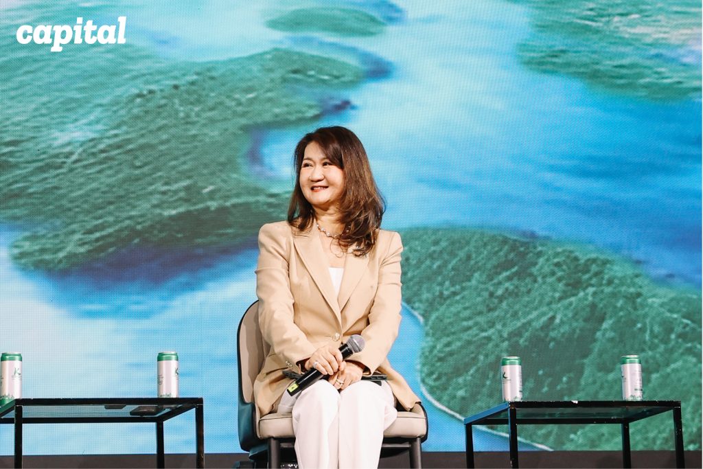 คุณกลอยตา ณ ถลาง กรรมการสถาบันการเปลี่ยนแปลงสภาพภูมิอากาศ สภาอุตสาหกรรมแห่งประเทศไทย กล่าวในหัวข้อ From Emission to Slimmer Carbon Footprint โดยเปรียบกระบวนการลดคาร์บอนในธุรกิจเหมือนกับการลดน้ำหนักของคน ซึ่งเริ่มต้นจากการเข้าใจความเสี่ยงที่ธุรกิจเผชิญจากการเปลี่ยนแปลงสภาพภูมิอากาศ เช่น ความเสี่ยงในการส่งออกหรือภาษีคาร์บอนข้ามแดน เปรียบได้กับโรคประจำตัวที่ต้องรู้เท่าทัน ก่อนจะเริ่มลงมือเปลี่ยนแปลง ธุรกิจจำเป็นต้องวัดผลคาร์บอนอย่างจริงจัง เปรียบคล้ายการชั่งน้ำหนักและวัดรอบเอวก่อนวางแผนลดน้ำหนัก โดยสามารถรู้ตัวเลขคาร์บอนของธุรกิจตัวเองจากแหล่งต่างๆ เช่น พลังงาน ขยะ และการขนส่ง