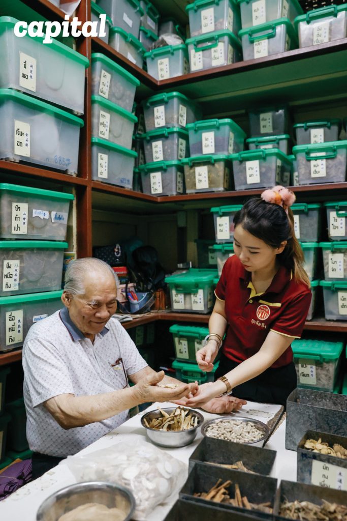 ถึงตรงนี้อากงประกอบขอพักบทสนทนาไว้ ก่อนจะเดินไปนั่งประจำตรงโต๊ะวินิจฉัยคนไข้เหมือนที่ทำมาเกินครึ่งค่อนชีวิต โดยมีบรรดาหมอรุ่นใหม่เป็นลูกมือจัดเตรียมสมุนไพรตามใบสั่งยาที่อากงเขียน