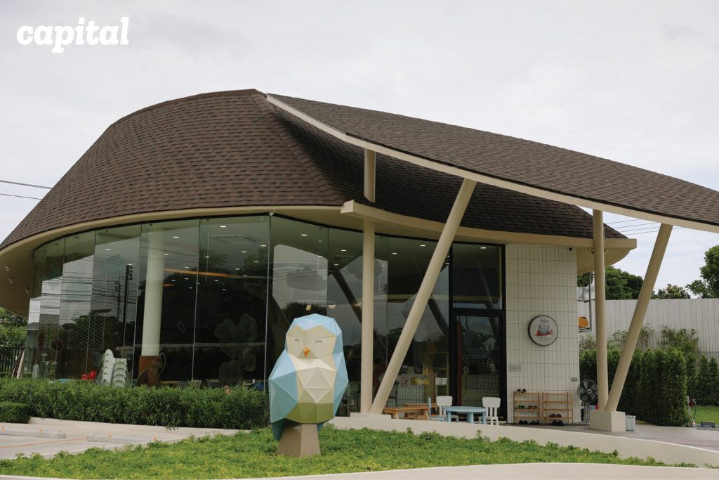 “ขณะเดียวกันเราคิดต่อว่าน่าจะมี ‘สัตว์’ สักชนิดที่ทำหน้าที่เป็นมาสคอตให้ผู้คนจดจำ ก็เลยนึกถึง ‘นกฮูก’ จากนิทานเรื่อง Three Little Owls เพราะนกฮูกดูเป็นสัตว์ที่มีคาแร็กเตอร์เฉลียวฉลาด มีนิสัยรักลูก หวงลูก ซึ่งถ้าเปรียบที่นี่เป็นรังนก บรรยากาศคงจะอบอุ่นเหมือนที่เราตั้งใจไว้” ดร.ผาณิตมาสอธิบาย