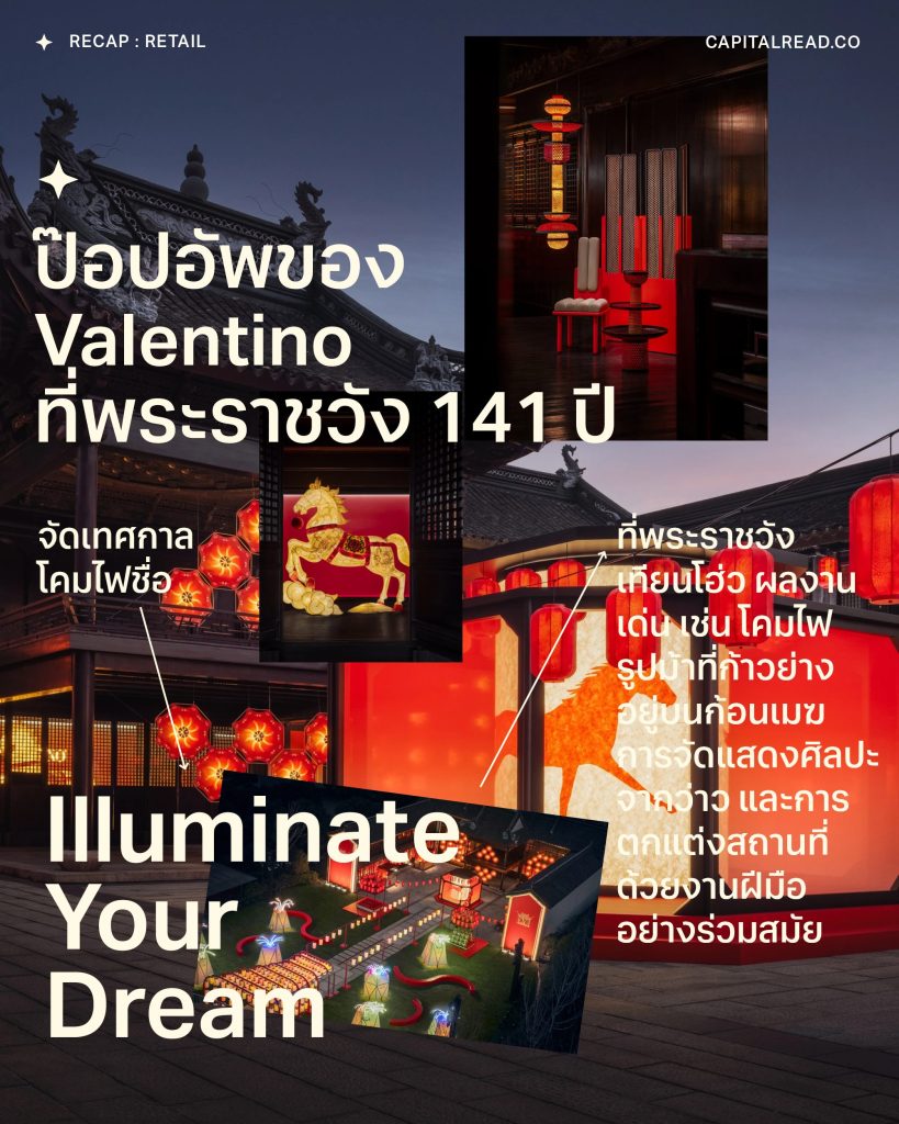 ตัวอย่างการจัดป๊อปอัพของแบรนด์แฟชั่นหรูระดับโลกอย่าง LOEWE, Valentino และ COS ในช่วงเทศกาลตรุษจีนปีนี้สะท้อนเทรนด์การตลาดเป็นภาพเดียวกันอย่างชัดเจน ตลาดลักชัวรีจีนกำลังขยับจากความหรูแบบตะโกน ไปสู่ quiet luxury ที่ไม่เน้นขายทันที แม้จะจัดงานอย่างอลังการ ถึงขั้นแปลงโฉมสวนในยุคราชวงศ์ชิงที่เก่าแก่ 400 กว่าปีในยามค่ำ ไปจนถึงจัดป๊อปอัพที่พระราชวังอายุหลักศตวรรษกลางเซี่ยงไฮ้ แต่สิ่งสำคัญที่สุดไม่ใช่การแข่งขันกันว่าใครจัดงานใหญ่กว่า แต่เป็นการสร้างประสบการณ์ที่เชื่อมโยงกับวัฒนธรรม รากเหง้า และสร้างความน่าเชื่อถือในระยะยาว