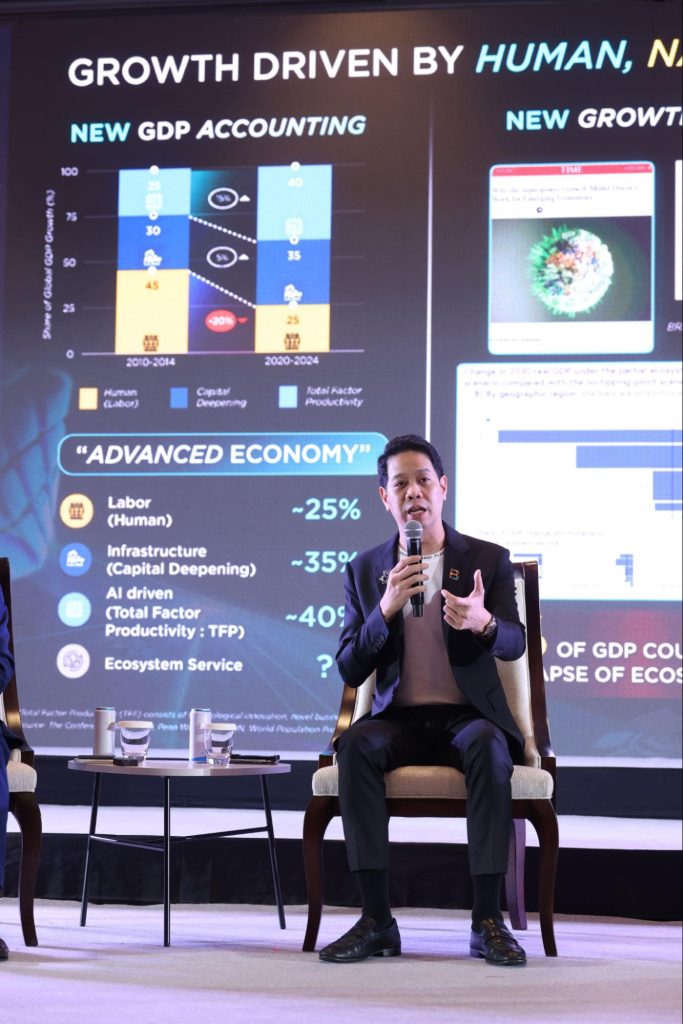 ที่ผ่านมา การพัฒนาทางเศรษฐกิจกับความยั่งยืนมักถูกมองแยกขาดจากกัน สิ่งสำคัญคือภาคนโยบายต้องทำให้สองเรื่องนี้กลายเป็นเรื่องเดียวกันให้ได้ เพราะไม่เช่นนั้น แม้ GDP จะเติบโต แต่ก็ต้องย้อนกลับมาแก้ปัญหาสิ่งแวดล้อมที่เกิดจากทุนนิยมอยู่ดี เรื่องนี้ควรกลายเป็น national agenda หรือวาระแห่งชาติ ขณะที่ภาคธุรกิจเองก็ควรตระหนักว่าการเติบโตต่อไปคือการแก้ปัญหาสังคมและสิ่งแวดล้อมควบคู่กับการหากำไร ในขณะที่ฝั่งประชาชน การปรับเปลี่ยนวิถีชีวิตเล็กๆ ในทุกวันก็เป็นแรงกระเพื่อมสำคัญเช่นกัน