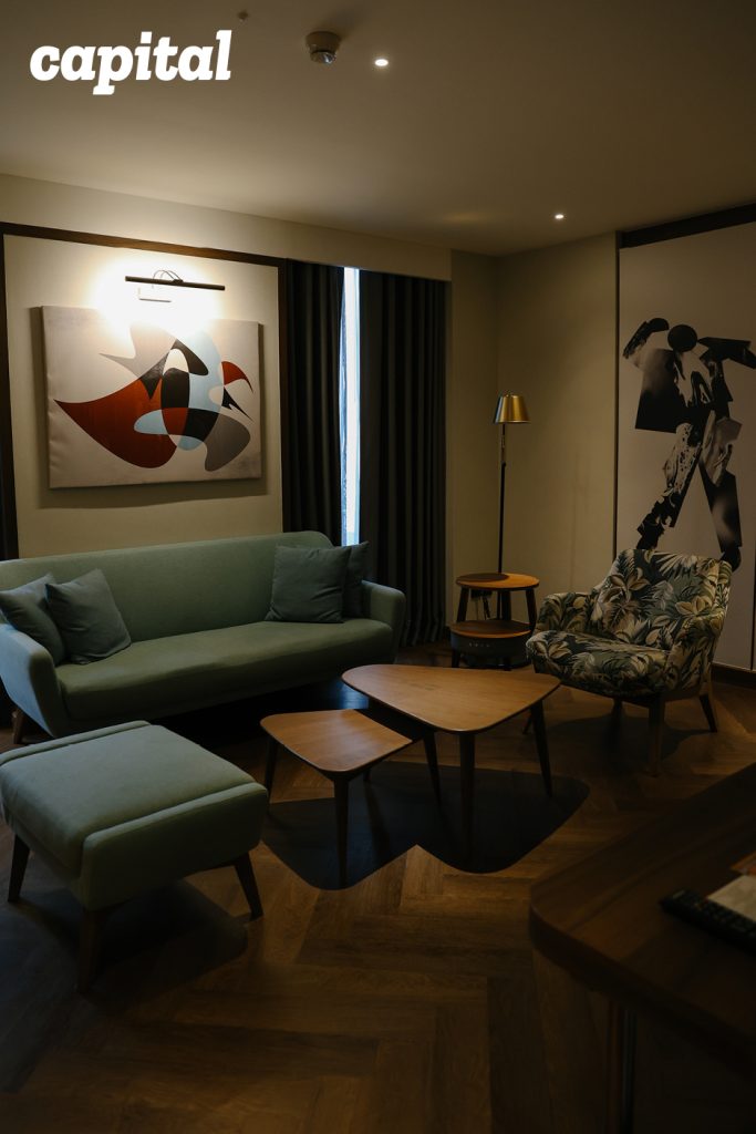 ที่นี่ดึงดูดเราได้ตั้งแต่พื้นโถงโรงแรมที่เป็นพื้นไม้ ซึ่งไม่ค่อยเห็นได้ในโรงแรมอื่น ธนชัยได้แรงบันดาลใจมาจากผับในยุโรปที่ใช้พื้นไม้แบบนี้เหมือนกัน “ตอนสร้างแรกๆ ผมจะโดนติงเยอะเรื่องพื้นไม้ เพราะทีมกลัวจะเป็นรอย แต่สำหรับผม รอยมันคือการใช้งาน คือความทรงจำ คือการใช้ชีวิต คือเสน่ห์ของมัน”