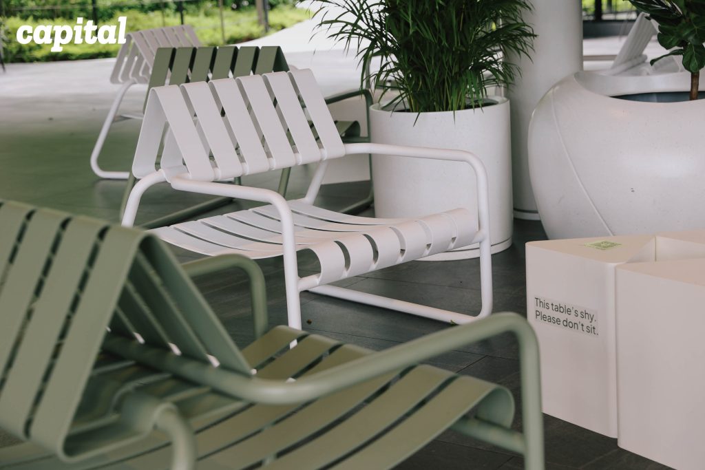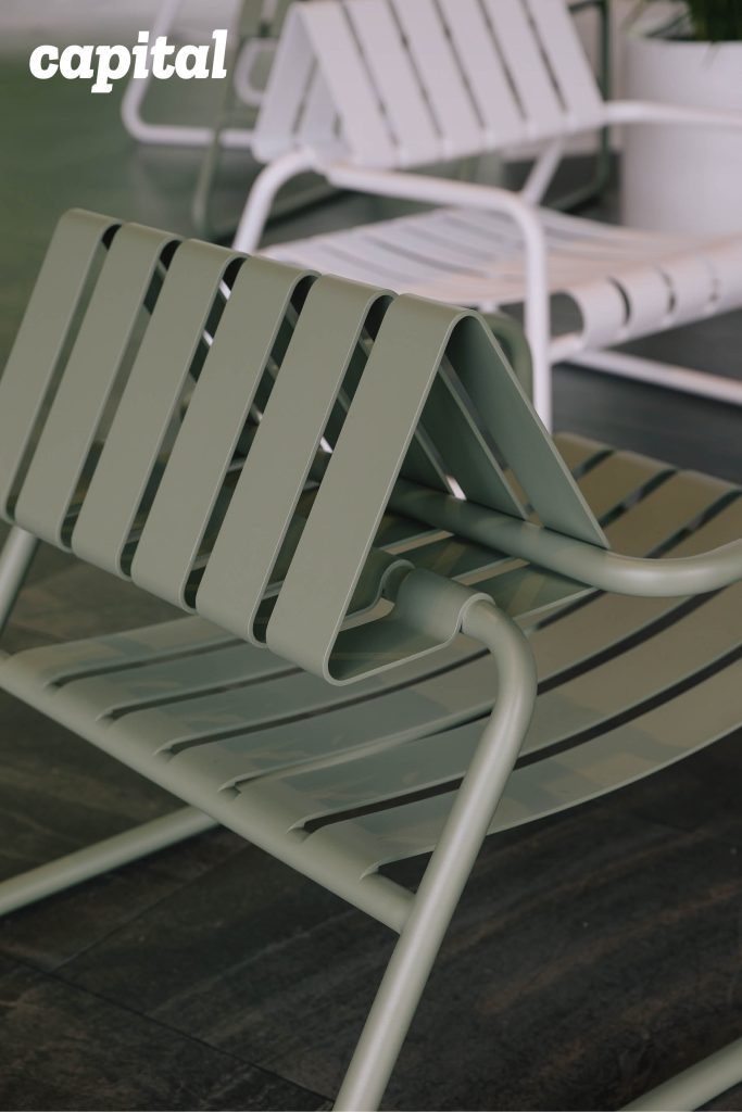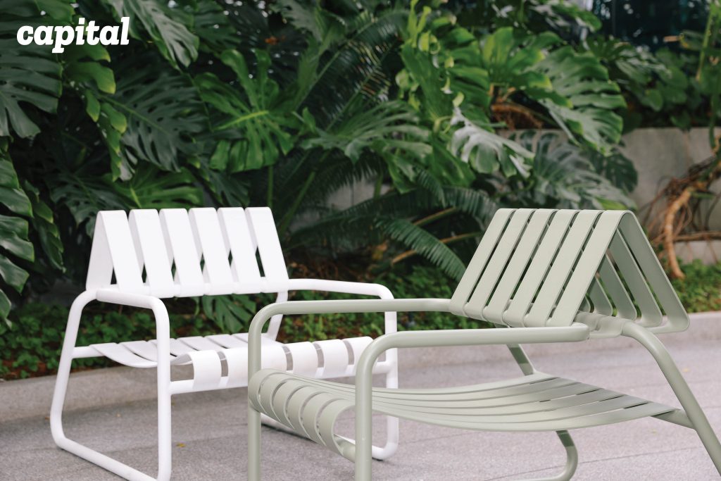แม้ความจริงแล้วเก้าอี้และโต๊ะเอาต์ดอร์เหล่านี้จะพูดไม่ได้ แต่กลับสามารถเรียกแขกและสื่อสารกับผู้คนที่แวะเวียนผ่านไปมาด้วยดีไซน์ได้อย่างน่าประหลาด ทั้งจากลุคขี้เล่นที่ใช้ฟอร์มเล่นกับรูปทรงเรขาคณิต แต่ยังคงความเรียบง่าย กลมกลืนกับแสง เงา ความร่มรื่น และความเงียบของพื้นที่โดยรอบที่ Velaa Sindhorn Village Langsuan ซึ่งเรามาเยือนวันนี้ได้อย่างเป็นธรรมชาติ