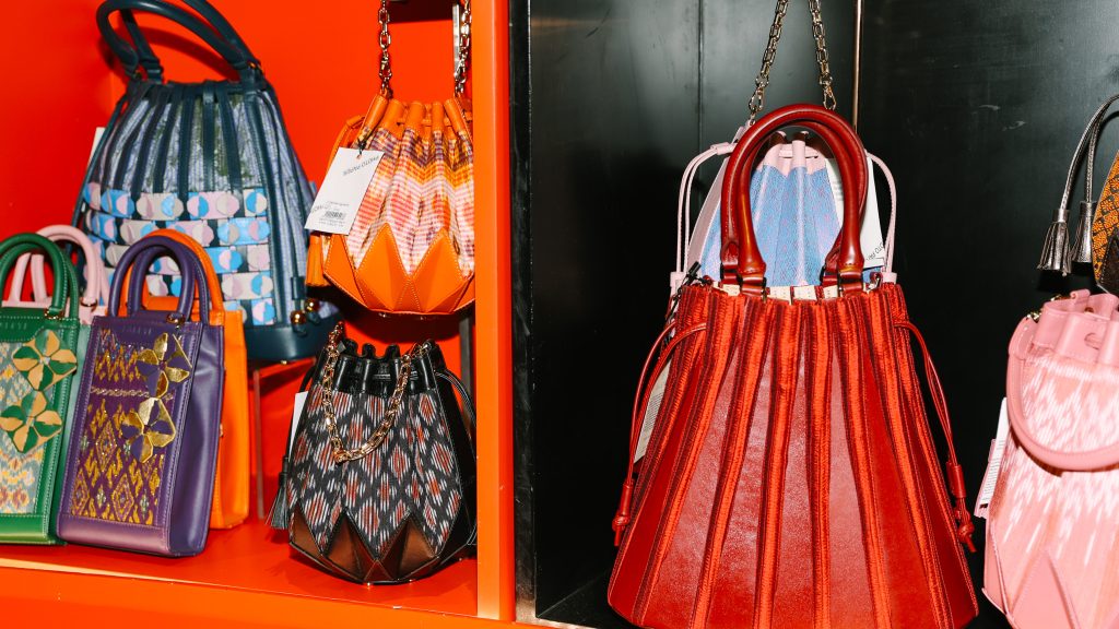 “เมื่อห้าปีก่อน ยังไม่มีกระเป๋าผ้าไหมสไตล์ casual ที่ใช้ได้ทุกวัน ส่วนใหญ่กระเป๋าผ้าไทยจะเป็นแบบที่เหมาะกับการออกงานทางการ โอกาสที่เราจะเห็นผ้าไทยหรือผ้าไหมในชีวิตประจําวันค่อนข้างน้อยมาก ชุมชนที่ทอผ้าก็น้อย เพราะขายยากและคนใช้งานยาก ด้วยความที่เราเป็นนักออกแบบ ก็เลยคิดว่าถึงแม้เราจะไม่ใช่คนในชุมชน แต่เราสามารถใช้การออกแบบช่วยชุมชนได้ กลายเป็นจุดเริ่มต้นที่ทํางานอนุรักษ์ผ้าไทย”