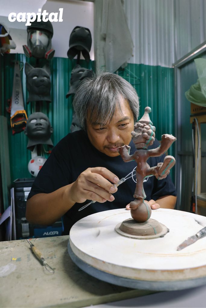 นอกจากกำลังใจจากลูกสาวและภรรยา อีกสิ่งที่หล่อเลี้ยง ‘แพชชั่น’ อาชีพการทำงานของเขาคือการทำงานคราฟต์ที่เป็นประโยชน์ต่อสังคม เช่นการออกแบบมาสคอตให้ CIB (Central Investigation Bureau: กองบัญชาการตำรวจสอบสวนกลาง), ผลิตแบบจำลองหุ่นกระบอกให้โรงละครโจหลุยส์นำไปเผยแพร่วัฒนธรรมต่างแดน ไปจนถึงการเป็นวิทยากรให้กับมหาวิทยาลัยจนถึงโรงเรียนช่างฝีมือ