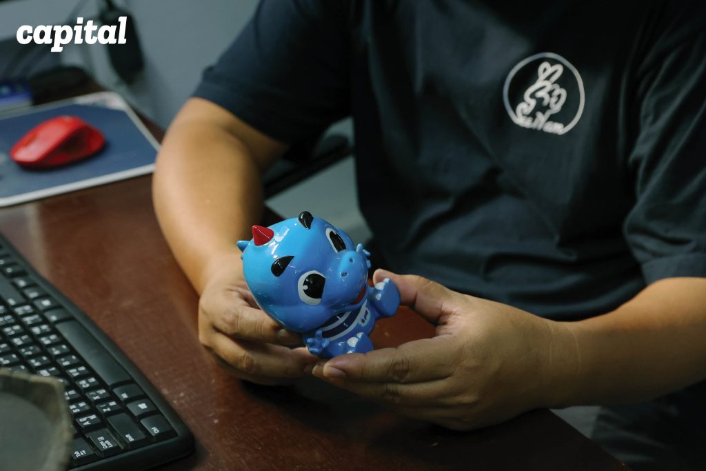 โด่งเล่าพลางจับโมเดลก็อตจิขนาดพอดีมือที่ตั้งอยู่บนโต๊ะด้วยความภูมิใจ