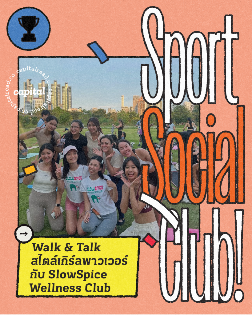 SlowSpice Wellness Club คือคลับสายชิลล์ที่ชวนสาวๆ มาขยับร่างกายเบาๆ ด้วยคอนเซปต์ We move & connect at sloth pace โดยมีกิจกรรมในคลับอย่าง Walk & Talk ที่ชวนเดินเล่นพร้อมชวนคุยหัวข้อที่เติมพลังใจ เช่น gratitude และ peace มีทั้งกิจกรรม Sunrise Edition และ Sunset Stretching ส่วนใหญ่จัดในสวนกลางเมืองอย่างสวนลุมฯ หรือสวนเบญจกิติ บางครั้งมีกิจกรรมเสริมอย่าง Book Swap ที่ช่วยให้บรรยากาศยิ่งอบอุ่นด้วย