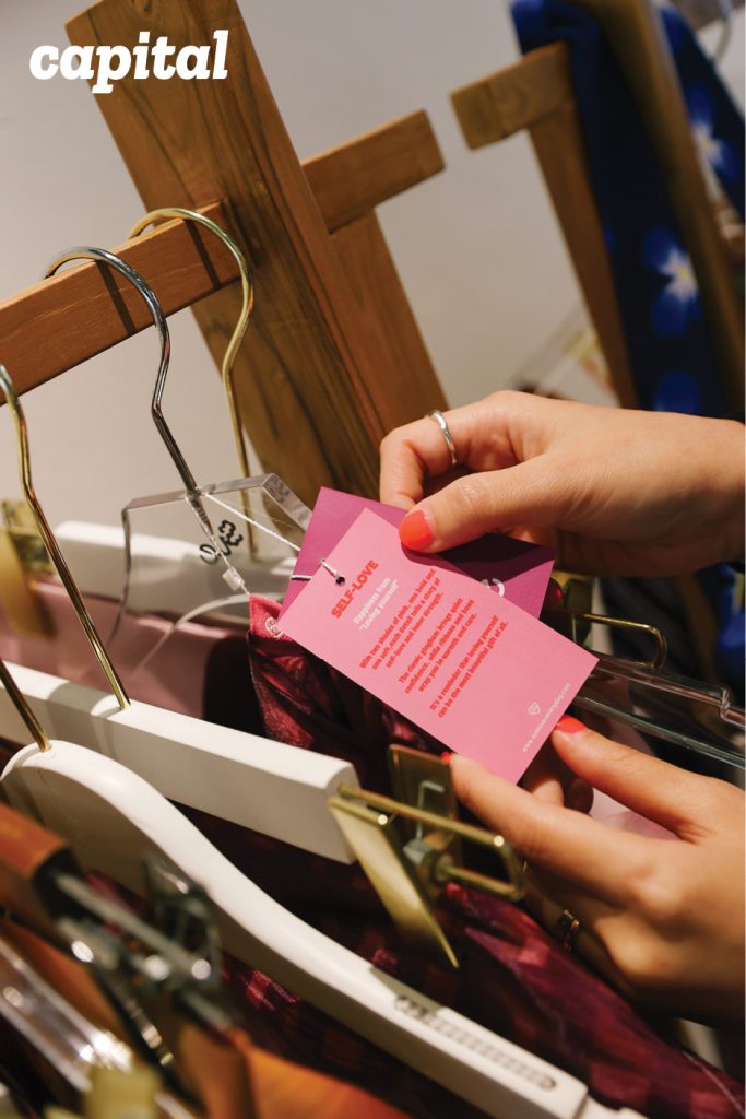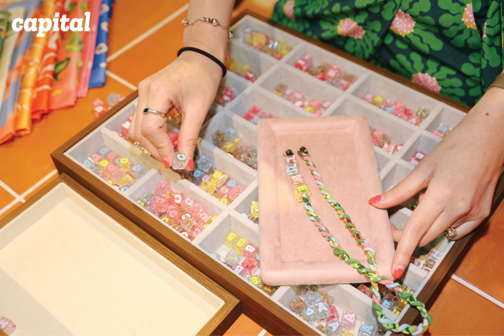 “ส่วนหน้าร้านหลักนั้น เราอยากให้ลูกค้ามาที่นี่แล้วได้ประสบการณ์ของแบรนด์ครบ นอกจากสินค้า เราทำโซนตรงกลางให้มาคัสตอมตัวอักษรสำหรับทำ charm ห้อยกระเป๋าได้ด้วย”