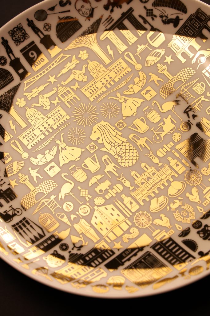หนึ่งในตัวอย่างที่เห็นภาพที่สุดคือ จานเซรามิกลายไอคอนของสิงคโปร์กว่า 100 อย่าง ที่ออกแบบลายใหม่ทุกปีเพราะพื้นที่บนจานมีจำกัด และทุกปีสิงคโปร์ก็มีเรื่องราวใหม่ๆ เกิดขึ้น ไม่ว่าจะเป็นนายกรัฐมนตรีคนใหม่ หรือเหรียญทองโอลิมปิกครั้งแรก ทุกลายจึงเป็นเหมือนบันทึกทางวัฒนธรรมที่เติบโตไปพร้อมเมืองและผู้คน
