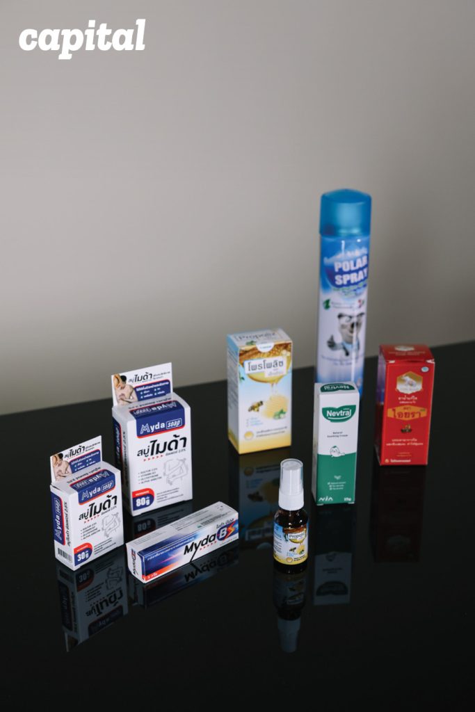 ยาน้ำแก้ไอไอยรา (IYARA) ที่แก้ปัญหาเรื่องรสชาติขมของสมุนไพร, โพรโพลิซ (Propoliz) ที่ทำให้รักษาอาการเจ็บคอได้สะดวกขึ้นในรูปแบบสเปรย์และเม็ดอม, ยาทา Nevtral Cream สำหรับรักษาอาการผื่นแพ้ทางผิวหนังจากสมุนไพรที่ลดผลข้างเคียงจากสารเคมีประเภทสเตียรอยด์, Polar Spray สเปรย์ปรับอากาศที่คิดค้นสารสกัดเพื่อบรรเทาอาการทางเดินหายใจทั้งต้นเหตุและปลายเหตุ, ยาพาราเซตามอล Para Fast Activ ที่ออกฤทธิ์ได้เร็วขึ้น 2 เท่าและแตกตัวได้ภายใน 21 วินาที