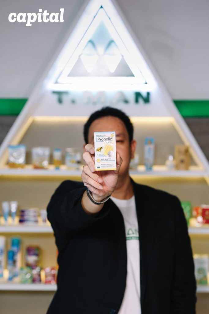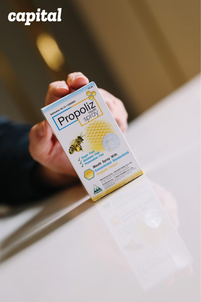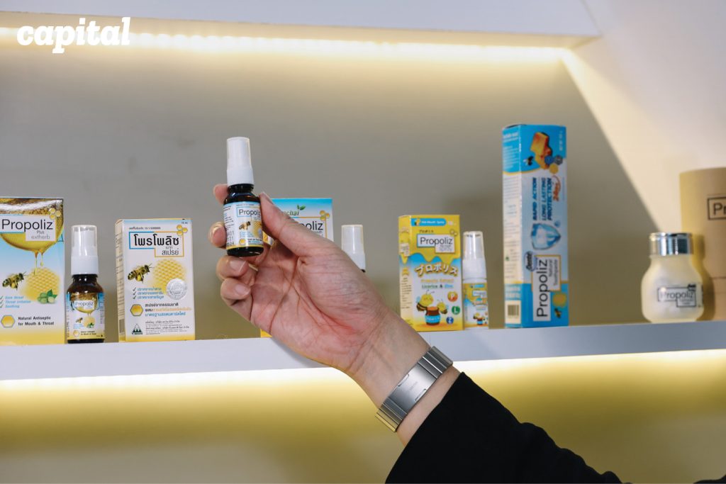 นอกจากยาน้ำแบรนด์เก่าแก่ที่หลายคนคุ้นเคยแล้ว สเปรย์พ่นคอชื่อดังอย่างแบรนด์โพรโพลิซ (Propoliz) ก็เป็นสูตรที่ TMAN คิดค้นสารสกัดสแตนดาร์ดไดซ์โพรโพลิซ (Standardized Propolis) ด้วยตัวเองเช่นกัน โดยทำสารสกัดให้ได้มาตรฐานสากลเทียบเท่ายาแผนปัจจุบันและต่อยอดการผลิตยาแก้เจ็บคอ Propoliz หลายรูปแบบทั้งแบบสเปรย์ เม็ดอม เพื่อสะดวกในการใช้หลากหลายวิธีของผู้บริโภค
