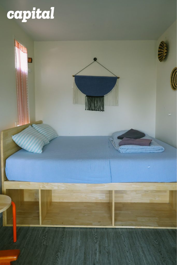 ก่อนที่เธอจะพาเราเดินทัวร์ห้องพักที่ทำมาจากตู้คอนเทนเนอร์ ซึ่งไม่น่าเชื่อว่าในแต่ละห้องกลับให้ความรู้สึกโปร่งโล่งสบาย จากหน้าต่างบานใหญ่ที่มองออกไปจะเห็นต้นไม้รายล้อม แม้แต่ห้องที่เล็กที่สุดในโฮสเทลแห่งนี้ เธอยังพยายามดีไซน์ให้มีระเบียงเปิดออกไปรับลมด้านนอกได้