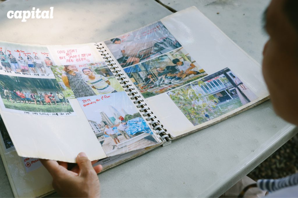 ส้มหยิบสมุดภาพมาให้เราดู ข้างในเต็มไปด้วยรูปภาพสถานที่แห่งนี้ตั้งแต่ยังเป็นที่รกร้าง ก่อนจะกลายเป็น The Yard Hostel อย่างทุกวันนี้ ทั้งยกตู้คอนเทนเนอร์เก่ามาสาดสีสันใหม่ให้สวยงาม เฟอร์นิเจอร์ทุกชิ้นในสวนก็เลือกหยิบของเก่ามาปรับใช้ แม้แต่ต้นไม้ทุกต้นเธอก็เป็นคนนำมาปลูกเอง จนผ่านไปถึง 11 ปี ต้นไม้เหล่านั้นก็กลายมาเป็นร่มเงาใหญ่ให้แก่สถานที่แห่งนี้