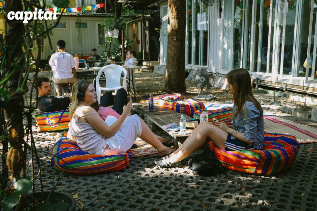 แต่สิ่งที่ดึงดูดความสนใจของเราที่สุด คือภาพบรรยากาศที่เหล่าคนแปลกหน้าหลากหลายเชื้อชาติต่างมาพูดคุยและทำกิจกรรมร่วมกันอย่างสนุกสนาน แม้แต่เจ้าของโฮสเทลแห่งนี้อย่าง ส้ม–อติพร สังข์เจริญ ก็ได้เดินทักทายแขกอย่างเป็นกันเอง