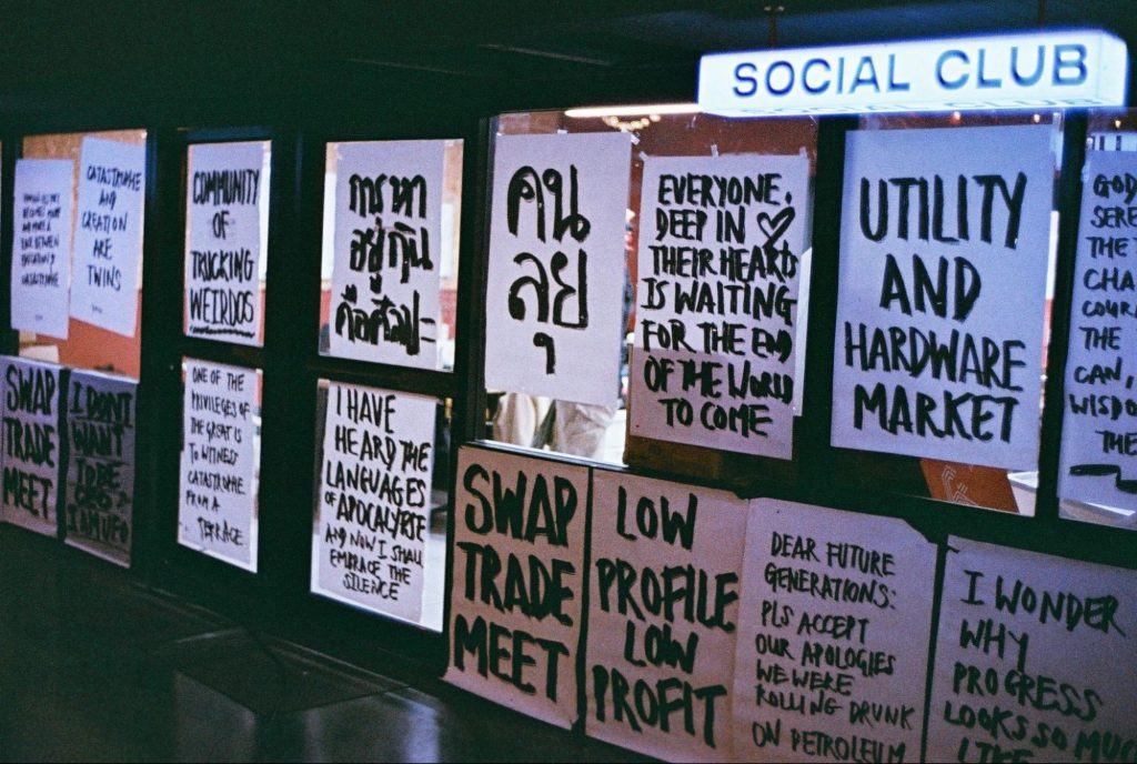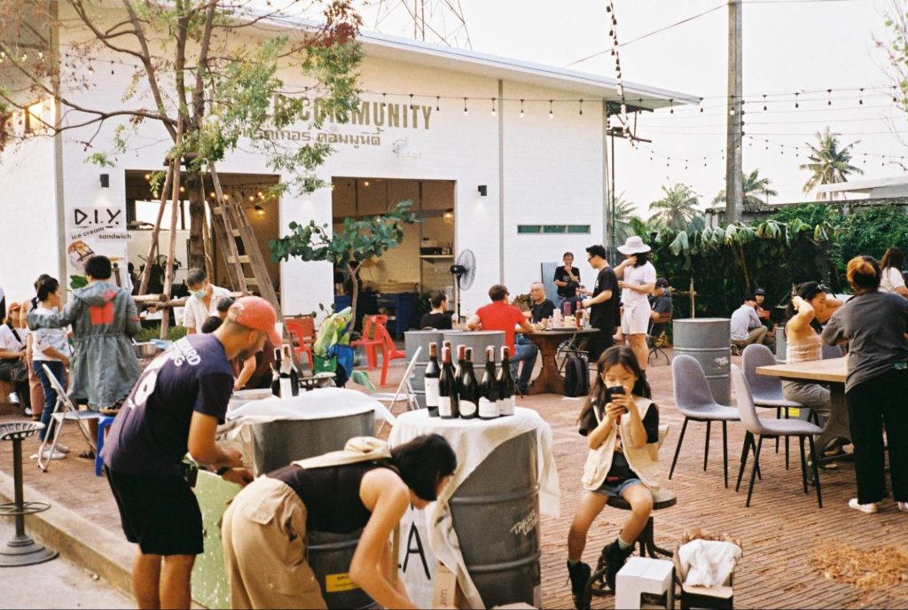 กิจกรรมจึงจัดออกมาเป็น community dining โดยให้ช่างมาเป็นพ่อครัวหัวป่าก์ บางครั้งทำเนื้อย่าง หมูย่าง หรือเมนูอาหารป่าแปลกๆ จากบ้านเกิดที่คนกรุงอาจไม่เคยทาน โดยบางครั้งมีเชฟมาร่วมแจมด้วย อย่างเชฟแบงค์–วิชชณุ เปรมภักตร์ จากร้าน Aromkwan (อารมณ์ควัน) ร้านอาหาร chef’s table ที่ถนัดการใช้เทคนิคการรมควันและโตมาจากการขายอาหารปิ้งย่างในรถกระบะฟู้ดทรัค