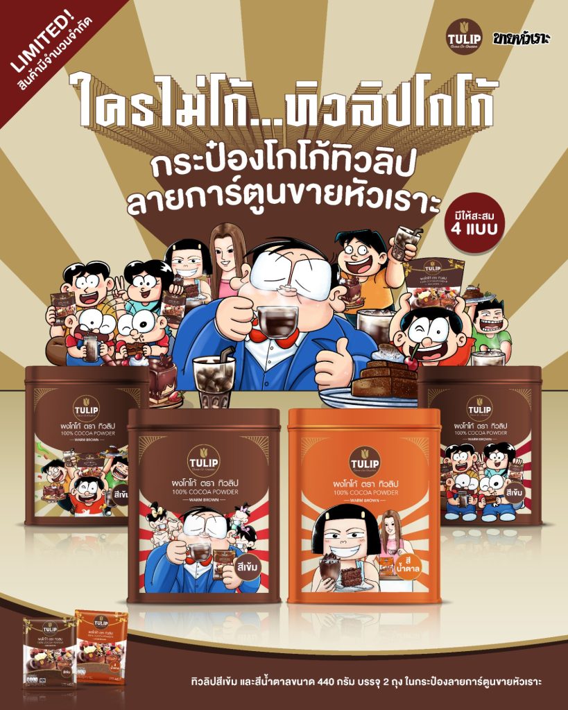 เช่นเดียวกับที่ ‘ทิวลิปโกโก้’ ผงโกโก้มหาชนคู่ใจผู้ประกอบการวงการเบเกอรีและคาเฟ่มาอย่างยาวนาน ที่ครั้งนี้ได้จับมือกับ ‘ขายหัวเราะ’ แบรนด์ความฮาสามัญประจำบ้าน ปล่อยแคมเปญใหม่ในชื่อ ‘ใครไม่โก้ ทิวลิปโกโก้’ ที่ออกกระป๋องลายลิมิเต็ดซึ่งใช้คาแรกเตอร์ขายหัวเราะ เติมสีสันความสนุก ชวนให้ทุกคนเก็บสะสมและหวนถึงความสุขในวันวานไปพร้อมๆ กัน