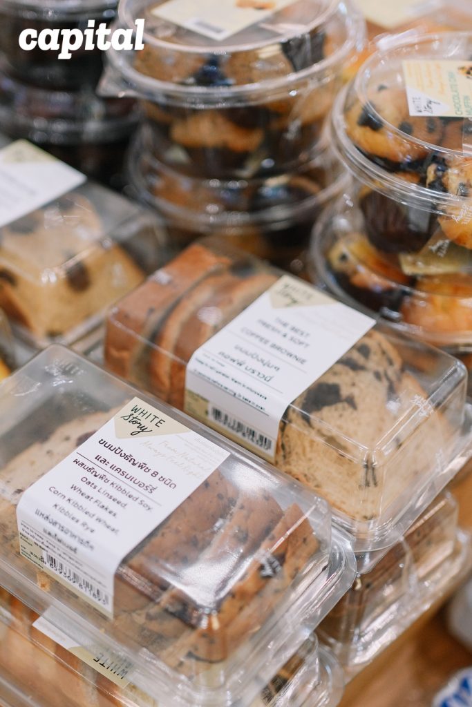 ที่ต้องบอกแบบนั้นเพราะจุดแข็งของ White Story คือการขายของ ‘อร่อย’ ที่คำนึงถึงความสุขของคนกินเป็นหลัก ไม่ใช่แค่รสชาติถูกปาก แต่ต้องทำสดวันต่อวัน ปราศจากสารวัตถุกันเสีย ปริมาณสารอาหารอยู่ในเกณฑ์กำลังดี และเพิ่มเติมคือวันนี้กระบวนการผลิตต้องคิดและลงมือทำโดยคำนึงถึง ‘สิ่งแวดล้อม’ ด้วย