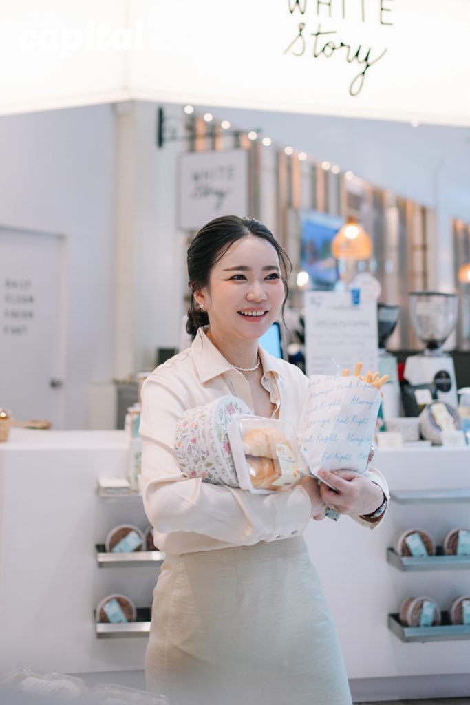 วาศิณีกล่าวพลางช่วยพนักงานในร้านจัดวางเบเกอรีที่เพิ่งส่งตรงจากเตาอบเมื่อไม่กี่ชั่วโมงก่อนอย่างขมีขมัน ไม่บ่อยนักที่เราจะเห็นคนระดับผู้บริหารใส่ใจเรื่องเล็กๆ น้อยๆ หรือลงมาทำหน้าที่หน้าร้าน แต่กับเธอที่พื้นเพเป็นคนชอบเข้าครัวตั้งแต่เยาว์วัยและเคยทำงานในสาย fast-moving consumer goods (FMCG) การลงมือทำเองคือหนึ่งในหนทางที่ทำให้เธอได้สังเกตพฤติกรรมผู้บริโภค เพื่อวางแผนพัฒนาโปรดักต์ที่ตอบโจทย์กับชีวิตประจำวัน ซึ่งนี่ก็เป็นที่มาของ White Story ด้วย
