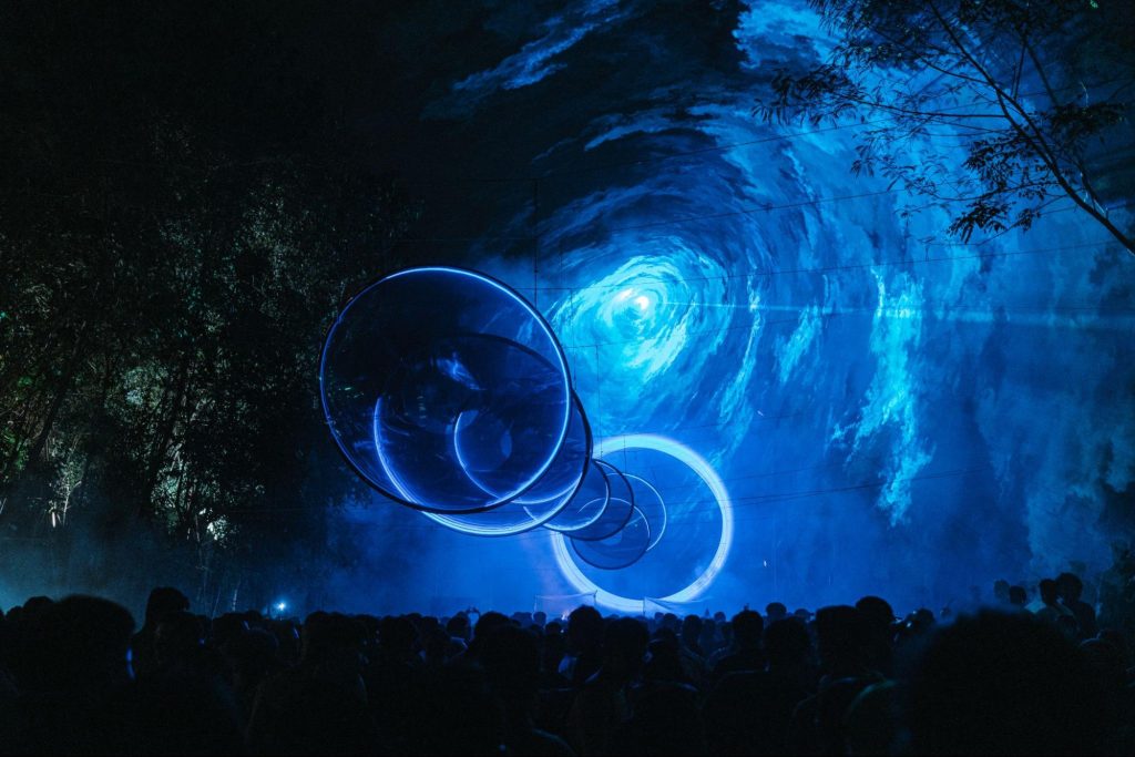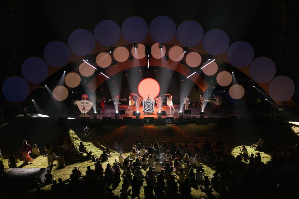และหากอยากพักกายพักใจ เมื่อลองแวะนั่งกลางทุ่งหญ้าที่ Creature Stage อัฒจันทร์กลางแจ้งซึ่งมีการแสดงสดระดับนานาชาติ แสงบนเวก็จะทีค่อยๆ คลี่ตัวออกเป็นวงแหวนซ้อนกันราวผิวน้ำ ชวนให้รู้สึกสงบและหยุดนิ่งอยู่กับช่วงเวลาตรงหน้า เป็นรูปแบบหนึ่งของเสียงบำบัดที่ช่วยให้ผ่อนคลายและยังสนุกไปพร้อมกัน