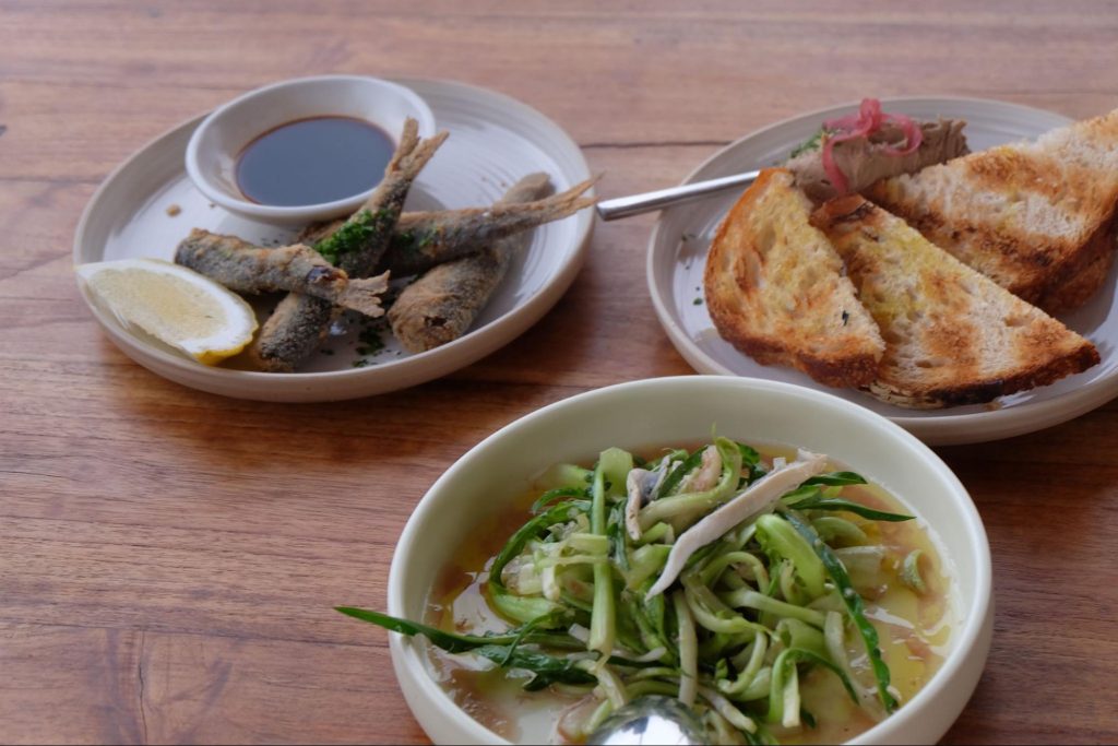 หลายคนอาจไม่รู้ว่า Wonderfruit มีร้านอาหารเต็มรูปแบบด้วย ที่ Jungle House โดยในทริปนี้ได้ลองชิมเมนูขนมปังซาวร์โดวจ์โฮมเมดเสิร์ฟคู่ตับไก่เมนูซิกเนเจอร์จาก Appia เนื้อแกะย่างเสียบไม้สไตล์อาบรุซโซ สลัดปุนตาเรลเล ปลาหมึกออร์แกนิกชุบแป้งเทมปุระ ปลาซาร์ดีนสเปน และไก่ปรุงปาปริก้ารมควันกับออริกาโน ทุกจานสะท้อนแนวคิดเดียวกันคือการกินอย่างรู้ที่มาและเคารพวัตถุดิบ